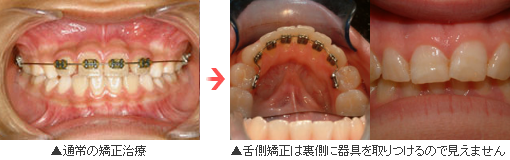 「見えない矯正治療」とは、歯の裏側に矯正装置をつける「裏側矯正」または「舌側矯正」という治療法です。